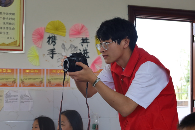 摄影摄像是文化与传媒学院学生的看家本领之一。在志愿活动中,有一位默默无闻地影像记录者——李国庆。他不畏艰苦,勤勤恳恳记录着志愿服务活动的每个美好瞬间,也记录下当地留守儿童的童年映像。他不曾出现在台前,而是在幕后默默做着工作,只为让更多人看到山区孩子们的生活,听到山区孩子们的声音。他们走出校园,走进大山深处,进行周边乡村访问调查,只为能够接触到当地的普通百姓,将最真实的景象传达出去。