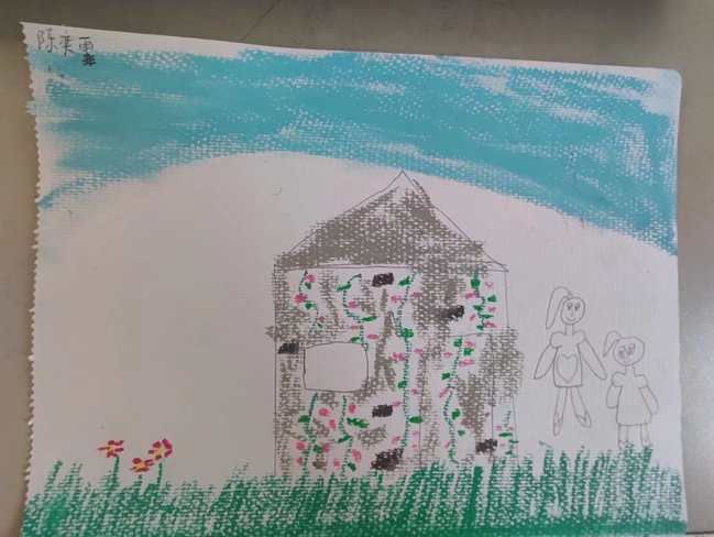 梭步希望小学学生送给队员张恩祺的画,希望张恩祺永远陪伴她