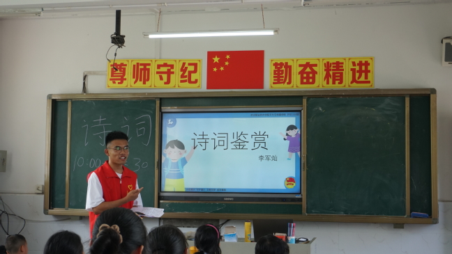 队员李军灿给梭步希望小学学生讲授《诗词鉴赏》课