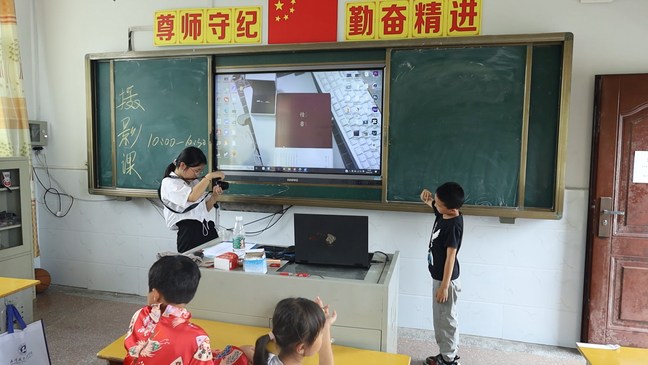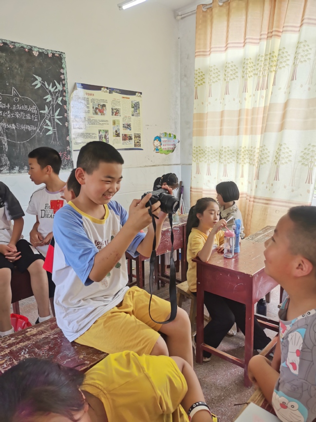 孙家欣为太阳河乡梭步希望小学学生上摄影课