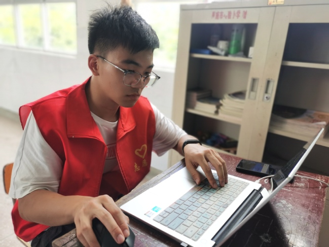 队员汤耀辉热心助人,积极向上,主动承担起团队“总秘书”的工作。从会议记录、采购支教物资、备课、拍照,到做好团队文件整理,各项工作安排有条不紊。队员曾心说:“旅途中,他热心帮大家提行李,尽管他手中的行李很多,但是他仍尽力帮大家,一路上不言苦和累。”作为活动启动仪式主持人,汤耀辉在到达志愿活动目的地——太阳河乡梭步希望小学后,不顾旅途奔波的疲劳,开始提前做准备工作。他一遍遍修改课件,打磨稿子,力求词句精准简练。他早上五点多就起来练声、背稿子,力争让自己的主持更加流畅、完美。