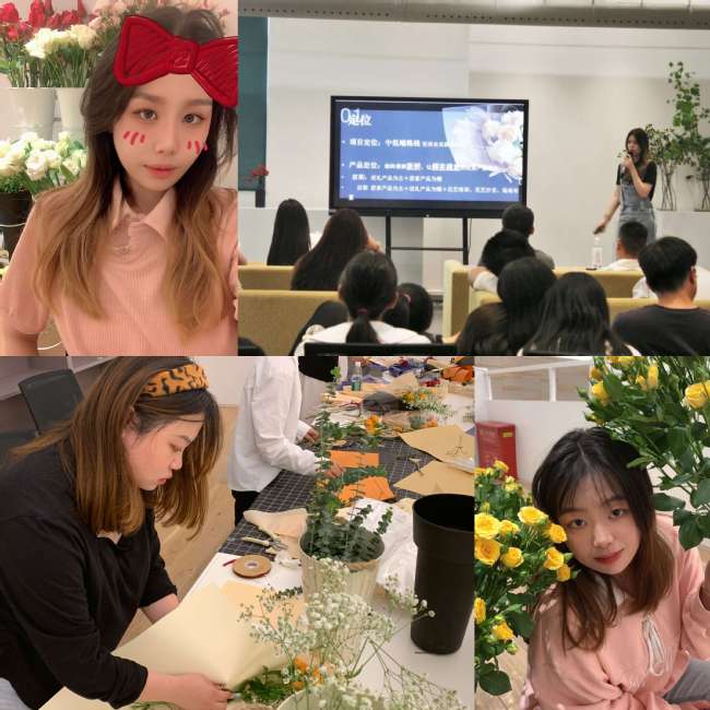 旅管19303班王艺霖从小就对花艺有着浓厚兴趣。来到大学之后,辅导员陈玲玲老师了解到她的兴趣爱好,鼓励她参加学院花之舞花艺协会。两年时间里,王艺霖负责组织各类大小型花艺活动,参加花艺比赛。2021年10月,学校众创空间招募创业团队,得知消息的她犹豫着要不要尝试一下,把兴趣变成事业。陈玲玲老师为她鼓劲:“孵化创业团队是学校众创空间功能之一,不收门面费、水电费,大胆去尝试就行!”于是,王艺霖和有着同样爱好的同窗好友一起递交入驻申请,经过层层遴选后开始经营起了她们的“花舞蝶飞花艺有限公司”。到目前为止已经有部分稳定的客户群体和订单。