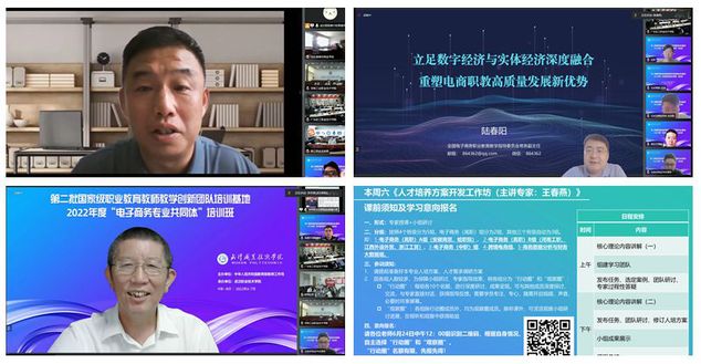 智能商务学院结合调研结果,与各国家级教师团队反复沟通,将培训内容设计为职教改革前沿、团队建设、专业标准建设与模块化课程资源开发、课程改革与建设、企业项目实战、信息技术应用、企业考察和结业考核交流等8大模块,涉及新职教法解读、职业院校内涵发展与教师成长、电商发展现状与职业教育、电商教学创新团队协作共同体建设、专业群构建与教学团队建设、教学创新团队建设方案、课程标准开发、课程体系重构、教材资源建设、工作过程导向的模块化课程开发和团队教学组织、电商技术变革和商业模式发展趋势、数字商贸背景下“岗课赛证”人培模式、电子商务运营课程资源开发、电商运营实战、电商直播与短视频运营项目实战、信息化教学软件高阶应用、企业调研考察、结业考核等18个主题。