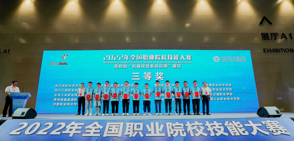 赛项裁判长王程民宣布比赛结果,与会领导嘉宾为获奖选手及优秀指导教师颁奖。武汉软件工程职业学院、武汉职业技术学院、常州工业职业技术学院、湖南机电职业技术学院、滨州职业学院、河北化工医药职业技术学院6支参赛队获一等奖,广西工业职业技术学院等11支参赛队获二等奖,哈尔滨职业技术学院等17支参赛队获三等奖。
