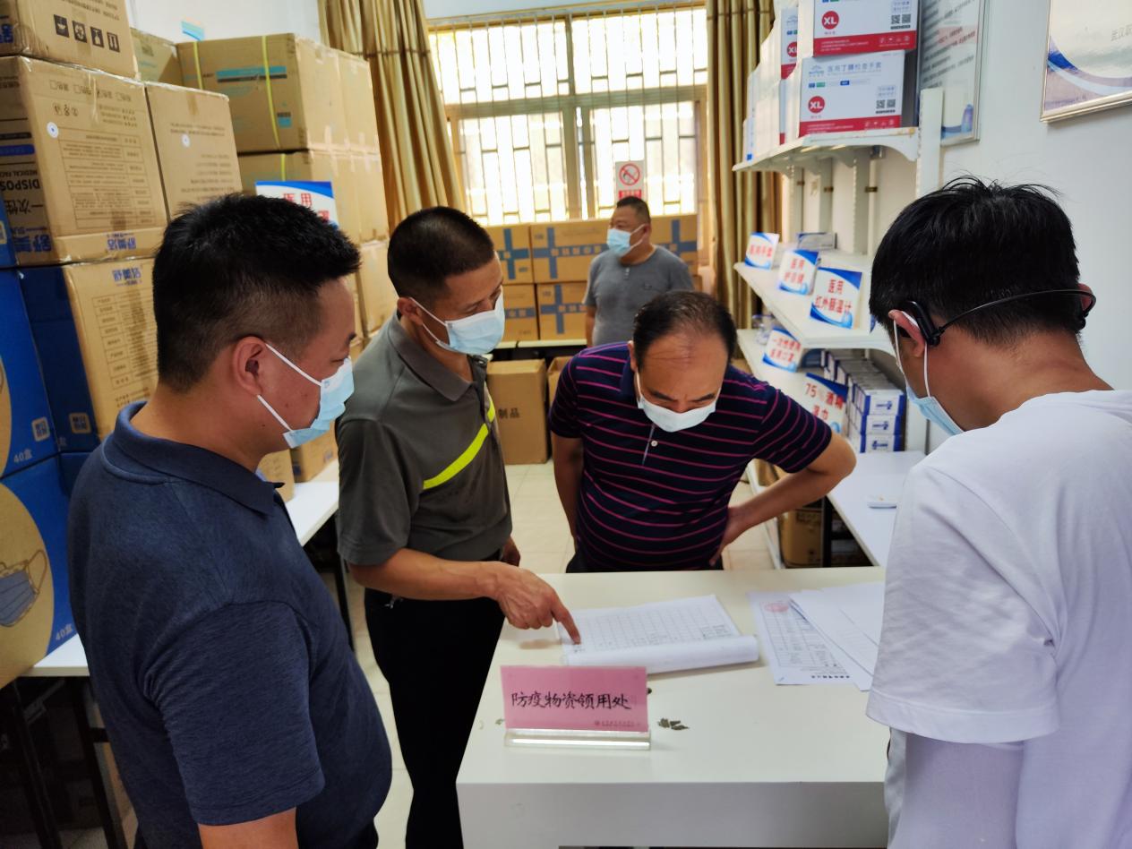 会后,苏民益一行实地查看了学校大门门禁、防疫物资储备点。