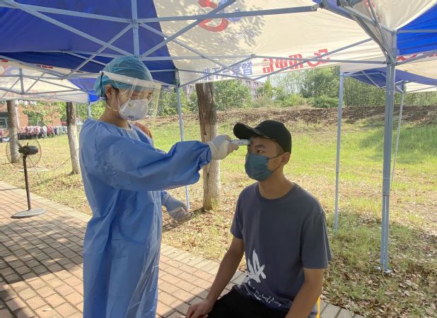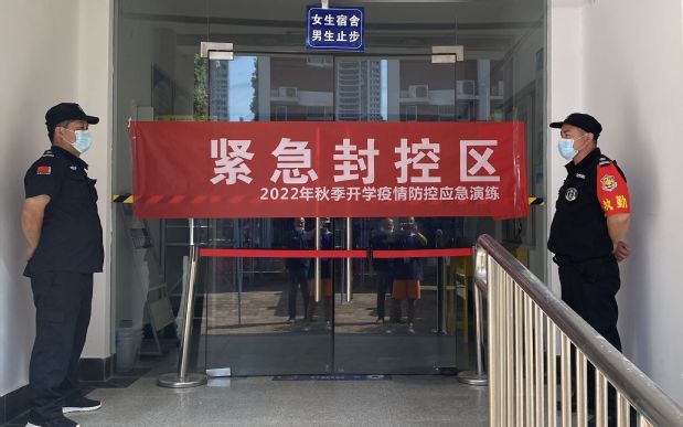 演练中,模拟了发现体温异常人员后,工作人员引导其至留观点、按流程排查上报、做好相关区域消杀,以及校内出现核酸阳性人员或密接者时,相关人员及时将其送至学校集中隔离点,并迅速封闭病例人员相关活动场所的一系列流程。