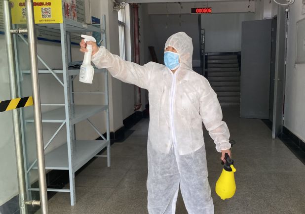 后勤工作人员进行场地消杀
