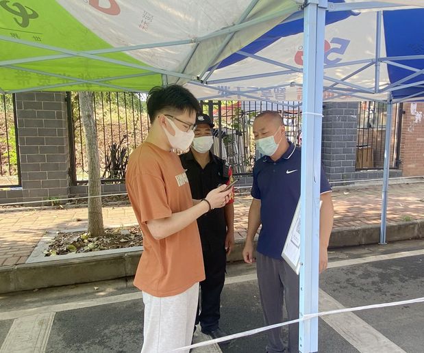 本次演练主要针对“人员入校”“入校人员出现体温异常”“校内出现密接者、次密接”“入校人员不配合门岗查验工作冲岗闯岗行为”等场景进行了全方位、全流程实战模拟演练。入校人员在安保队员的指引下,出示健康码、行程码,扫码登记后经测温通道有序入校。