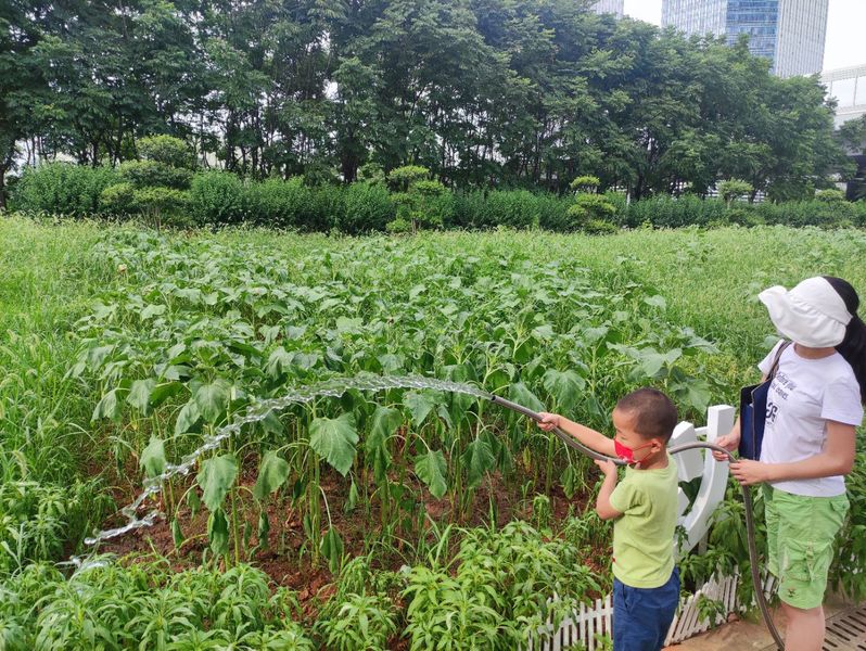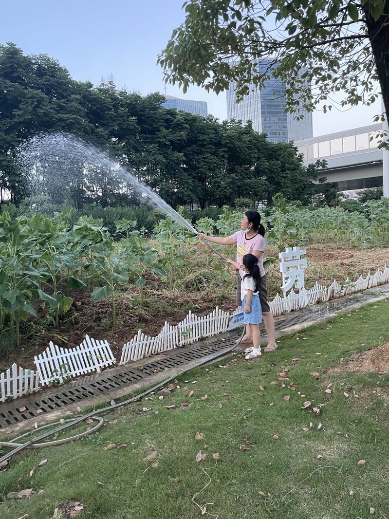 教师“浇水打卡”,成为了向日葵基地一道亮丽的风景线,还有的老师带孩子一起到学校体验劳动的快乐,让孩子从小种下热爱劳动的种子。