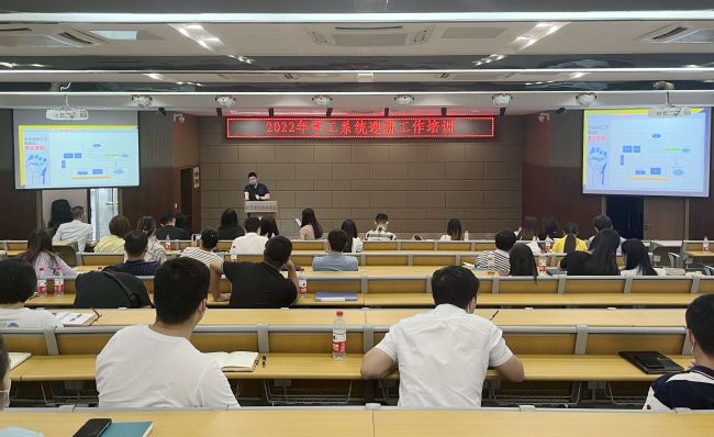 9月9日,14名新入职辅导员与全体2022级新生辅导员(班主任)汇聚逸云楼113室,参加2022年学工系统新进辅导员(班主任)岗前培训暨迎新工作培训会。学生工作处科室负责人、信息化办公室老师和一线辅导员代表为新入职辅导员(班主任)作专题培训。辅导员关勇用疫情防控“一张表”来分享学生工作中的点滴;心理健康中心老师程若沁介绍了学校心理健康中心主要职责和机构设置以及学生常见心理危机的识别与应对;辅导员周惠宇借助“辅导猫”展示日常学生管理的有效方法;学生资助中心主任肖倩红通过多途径多方法阐明了如何走进贫困生心里并对其进行有效帮扶;信息化(网络安全)办公室戴佩、董磊从学校学生管理系统讲解如何导入、修改、搜索学生信息;学生教育管理科主任袁昌宁解读了2022年新生报到流程及防疫相关要求;学生工作处副处长陶舒对迎新工作方案进行了补充说明和现场答疑。