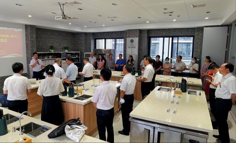 旅游与航空服务学院院长李俊向现场来宾介绍了美好生活技能创新创业实践基地(教学工厂)独有的“1138”运行体系。即为,1个目标:培育美好技能,服务美好生活,成就美好未来;1种模式:“学研产商”四位一体协同发展+“岗课赛证”综合育人;3个板块:教学板块、研创板块和经营板块;8个平台:教学厨房、调酒实训室、茶艺实训室、餐饮产品研发中心、旅游信息化协同创新实验室、制茶与茶艺工作室、F+森系法餐厅和慢生活休闲吧。