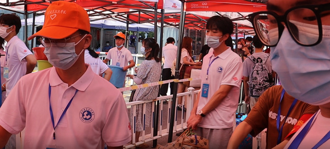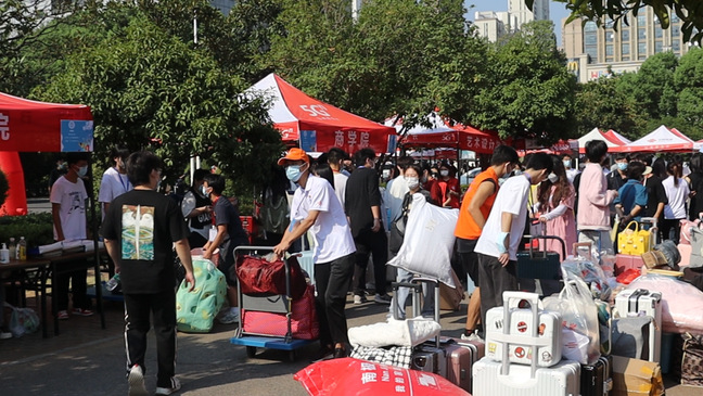 新生辅导员们关切的目光停留在一个又一个拖着行李、带着梦想来的年轻人身上。