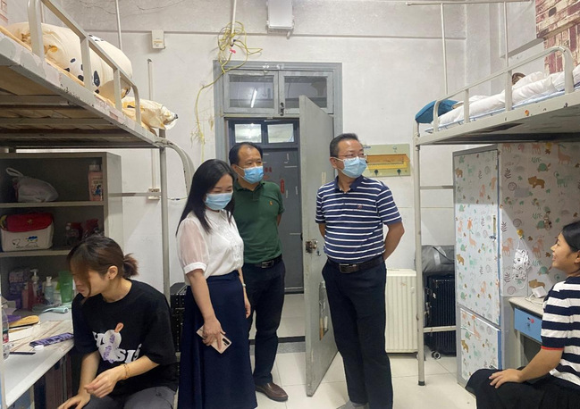 9月12日下午,外语外贸学院领导班子、辅导员老师走进宿舍,与新生亲切交流,详细询问入校情况和到校感受,细心叮嘱新生们注意增减衣服、做好个人防护,有问题及时告知辅导员。外语外贸学院分党委书记江辉鼓励新生快速融入集体,建立和谐的人际关系,做好人生规划,学好专业知识,提升综合能力。领导老师的关怀,让学生们感受到家一样的温暖,倍感亲切。
