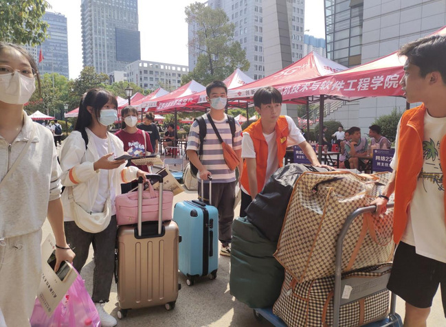 9月12日新生报到第一天,接待老师及学生志愿者们早早来到迎新现场做好准备工作。在迎新过程中,工作人员、志愿者们热情地接待每一位新生,耐心指导新生前往宿舍,帮助他们搬运行李,为新生提供“一站式”暖心服务,让他们感受到了学院大家庭的温暖。