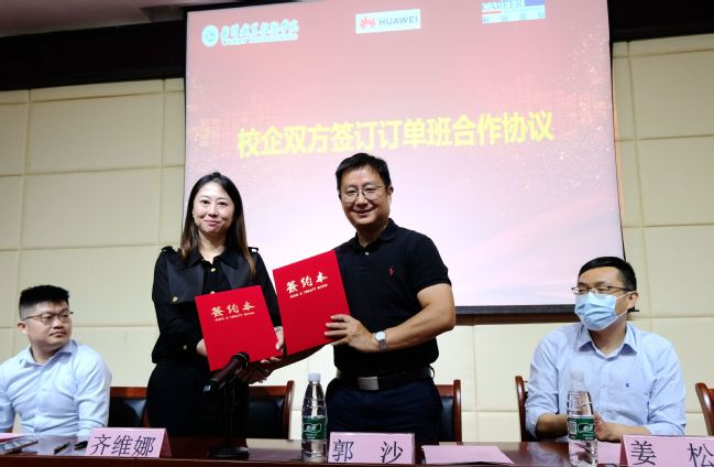 郭沙、齐维娜代表校企双方签署“订单班”合作协议