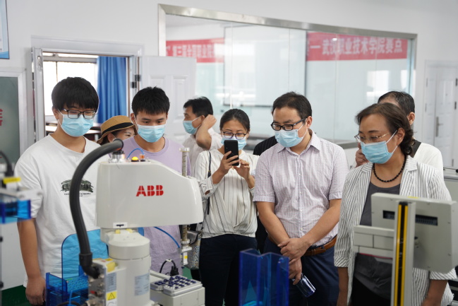 会后,盟员教师实地参观了武汉职业技术学院文化与传媒学院演播厅、机电工程学院3D打印技术中心、工业机器人实训中心,与学生积极互动交流。盟员教师们表示对武汉职业技术学院先进的职业教育办学理念和特色教学氛围留下深刻印象。