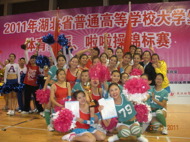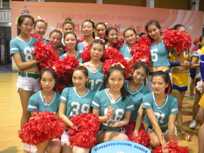 2008年,学校体育馆刚落成,就被选作湖北省首届啦啦队电视大赛举办场地。作为东道主的武职也决定参赛。比赛在即,我临危受命担任校队教练一职,开始组建学校啦啦操队。毫无经验的我,向武汉体育学院专业老师请教,从选拔队员到带队训练,边学习边实践,耗费无数心血硬是带出了一支花球操队伍。在部门领导汪胜主任关怀和指导下,在部门同事特别是任超老师协助下,我带领这帮“初生牛犊”首战告捷,斩获当年大赛高职高专组第一名。