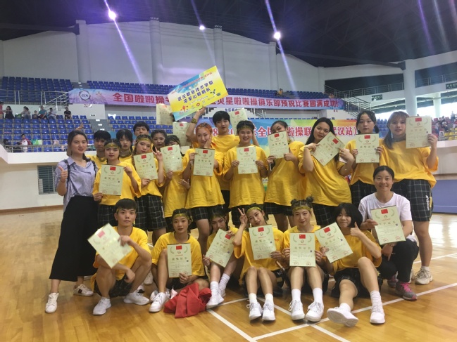 杨梦莹(后排右一)参加2011年湖北省大学生体育舞蹈、啦啦操锦标赛
