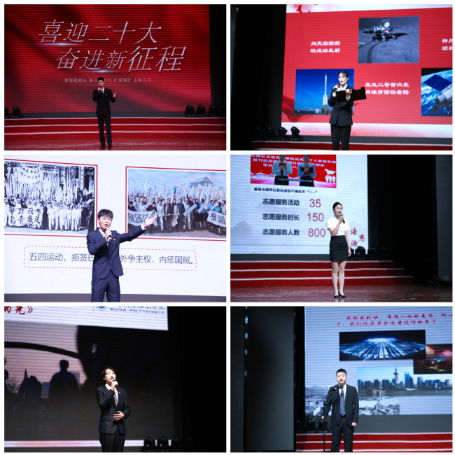 优秀主讲人巡讲展示赛制分为“主题讲演”和“一点通展示”两个环节的形式连贯进行。18名主讲人激情满怀,紧密结合当下热点新闻,以独特视角讲述自己的故事,分享党史学习心得。主讲人带头学党史讲党史,在演讲过程中碰撞思想、交流心得,表达青春心向党、奋进新征程的信心和决心。