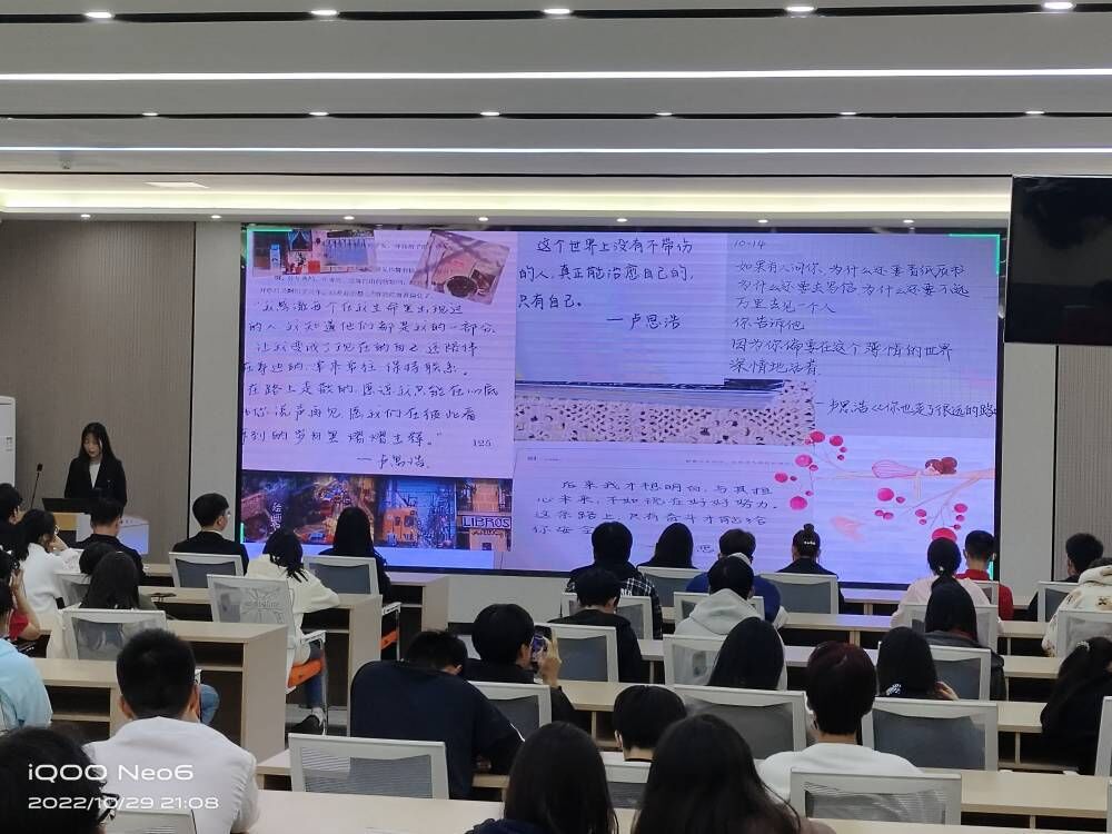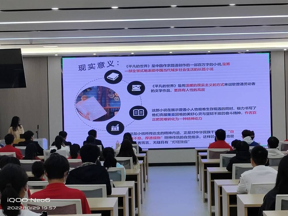 书香为伴,悦读同行。在“读书分享会”活动中,学生们积极展示,气氛热烈。推选的《活着》、《小王子》、《平凡的世界》等经典书籍,他们或充满激情,或娓娓道来,结合自身经历,师生畅谈阅读感悟,共品百味人生。