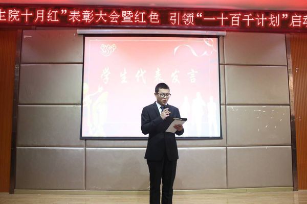 会上,王振宇介绍了生物工程学院学生工作精品项目“一十百千计划”,该项目是在“生院十月红”的品牌基础上根据学院实际情况而创设的,即以一个红色思政教育为核心,以讲、演、唱、说、画等形式多样的十件文化活动为载体。他表示,表彰先进,启动红色引领“一十百千计划”,旨在发挥典型示范作用,凝聚朋辈力量,让红色精神引领新时代青年在青春赛道上奋力奔跑。
