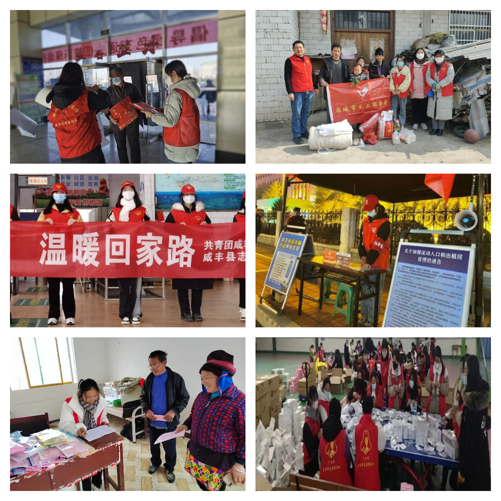 安全21304班向谭蓉在咸丰县客运站参加“青春志愿行,温暖回家路”志愿服务。安全21302班周金圆跟随义工们一起走访麻城特殊家庭,为困难群众送去社区慰问物资,他们使冬日里那份互助的温暖直抵人心。