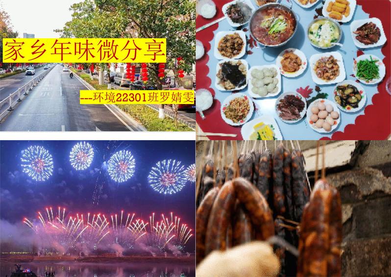 “这是我们自己动手腌制的腊肠腊肉,还有奶奶亲自做的鱼糕,意为‘余高’”来自环境22301班的罗静雯分享了自己家乡的年文化,“这是三年来过得最开心的一个年了,又看到了往日的生机与朝气。”