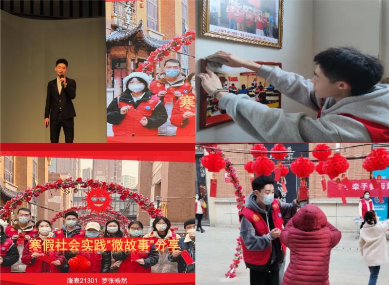 “下沉120多小时,走访20余家孤老人,10多个记录表,3场送温暖活动。”来自纺贸21301班的王馨仪用数字展示了自己寒假社会实践的“成绩单”。“这是王奶奶,她的腿脚不好,我每天都会上门帮她倒垃圾;这是张大爷,他性格内向,我隔天就会到家跟他聊聊天。”每播放一张图片,王馨仪都能清晰地回忆起图片中的故事情节。