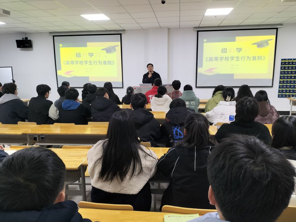 在“文明礼仪大讨论”主题学习中,各班级组织开展集中学习《高等学校学生行为准则》,要求同学们自觉践行日常行为规范,增强文明意识,加强自我约束自我管理,从身边小事做起,从细微之处入手,把提升个人修养与创建文明校园紧密结合起来。