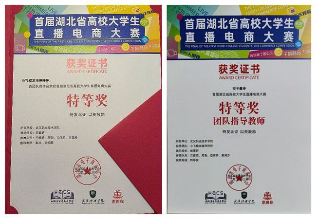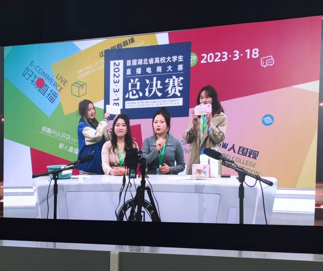 武职网讯(通讯员 秦冲 摄影 刘绍君)3月18日,首届湖北省高校大学生直播电商大赛总决赛在武汉传媒学院举行,由武汉职业技术学院智能商务学院学生吴紫妍、兰雅琦、周阳、章依梦、黄润芳组成的“小飞棍来咯呼呼呼”团队经过奋力拼搏,以总决赛第六名的成绩荣获特等奖,并获得直通第十三届全国大学生电子商务“创新、创意及创业”挑战赛湖北省省赛资格,秦冲、刘绍君被评为“优秀指导教师”。