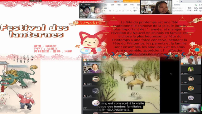 武职网讯(通讯员 卞新珍)近日,应用法语专业21级学生迎来了本学期第一堂翻译课,应用法语专业骨干教师卞新珍老师用“一带一路”“中国梦”等热点词汇开启课程,以“剥豆豆”线上抢答活动进行课前热身,着力构建“文译”课堂,讲好中国故事,传播中国文化。