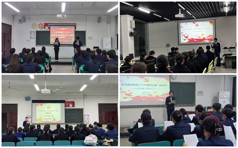 3月27日至29日,1000余名旅游学子利用晚自习时间开展了“读原文、悟原理、谈体会”专题学习活动,各班团支部书记领学、全体学子集中诵读党的二十大报告第一、二、三、五、八、十、十一等章节原文。