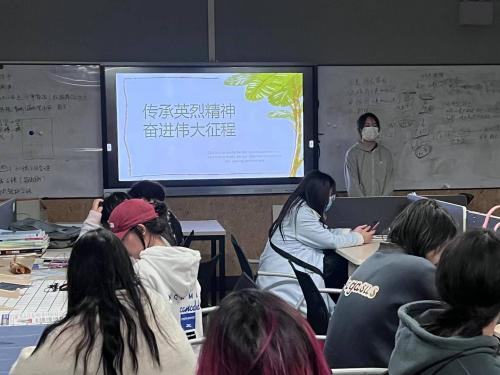 4月3日中午,艺术设计院分团委副书记杨珺然带领团学联骨干在德艺楼展厅举行“缅怀英烈承遗志 追思立志做栋梁”主题教育团课。课上,杨老师讲述了“海空卫士”王伟、“清澈的爱只为中国”的国门卫士陈祥榕等英烈的故事,并和青年学子们一起为先烈默哀。师生观看了“红色九月”北京英烈事迹之抗日英雄白乙化、“英雄回家—燃烧的青春”等系列红色视频。团员代表王慧新说,“山河无恙,缅怀英烈,青年一代从未忘记。风华正茂的我们,要树立远大理想,热爱祖国,用智慧和勤劳创造出一个更美好的明天!”