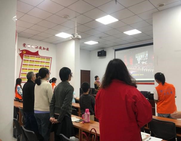 刚到社区教室,志愿者们看到已经有家长带领孩子们陆续到来。志愿者在社区工作人员协助下调试投影、音频等设备,做好准备工作,同时组织孩子们签到、安排位置,亲切地和孩子们交流,了解其兴趣爱好、年级等,拉近了与孩子们的距离。