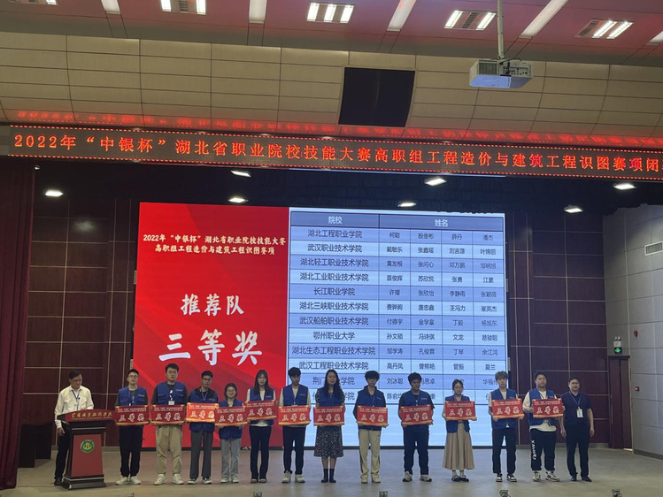 武职网讯 (通讯员 付健)4月18至20日,由湖北省教育厅主办的湖北省职业院校技能大赛工程造价与建筑工程识图赛项在黄冈职业技术学院举行,来自全省38所高职院校的76支队伍近400人参赛。武汉职业技术学院两支代表队参赛,戴敏乐、张鑫瑶、刘言源、叶锦丽获推荐队三等奖,贾若菲、尹启浩、李文凯、李思源获抽测队三等奖。