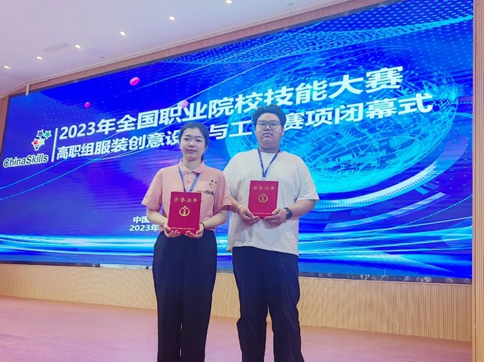 5月14日至15日,来自全国各地高等职业院校的51支参赛队伍102名选手齐聚山东科技职业学院同场竞技,展示服装创意设计与工艺技能风采。代表湖北出征国赛的纺织服装与工程学院2020级学生李儒锋、张依依密切配合,沉着应战,娴熟干练,在规定时间内高质量完成创意设计和成衣制作,受到评委高度赞赏,最终斩获服装创意设计与工艺赛项(高职组)团体一等奖,为湖北省和学校赢得了荣誉。