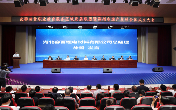 湖北容百锂电材料有限公司总经理徐哲在发言中介绍了公司的基本情况。他表示,希望以职教联盟和联合体成立为契机,与各职校建立同社会经济发展相适应、产教融合共生的职业教育发展机制,实现产教融合协同育人效应,打造产教联合体,促进产业链和教育链匹配。