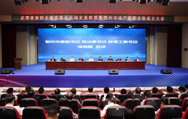 武职网讯(党委宣传部 陈峰 通讯员 丁云栋 摄影 陈峰 左佑) 5月17日上午,鄂州市葛店经济技术开发区招商展示中心三楼报告厅嘉宾云集,高朋满座,由武汉职业技术学院牵头打造的武鄂黄黄职业教育服务区域发展联盟暨鄂州市域产教联合体成立大会在此隆重举行。