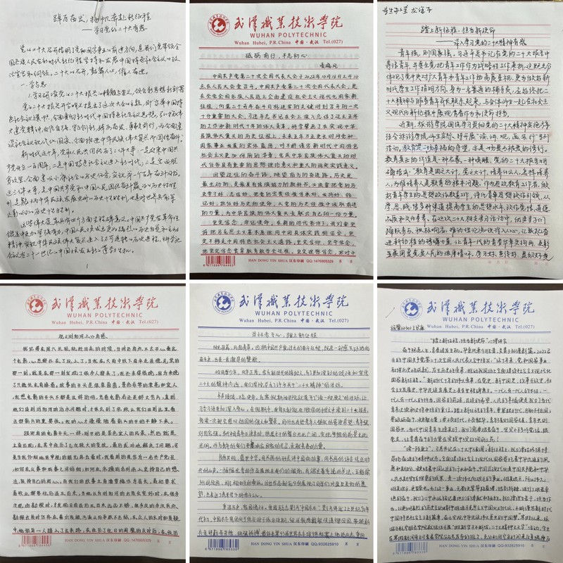 “盛世当即,奋斗在时,青春有我。新时代青年要把青春奋斗融入党和国家和人民的伟大事业中,保持积极进取、乐观向上的姿态,投身到学校、学院组织的各类活动中去,不断充实自身知识储备,以自我全面发展为努力方向……”爱国爱党爱人民的字符跃然纸上,也跳动于每个学生心间。