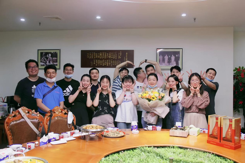 何雨潇(前排右一)和同事