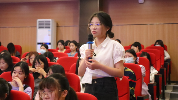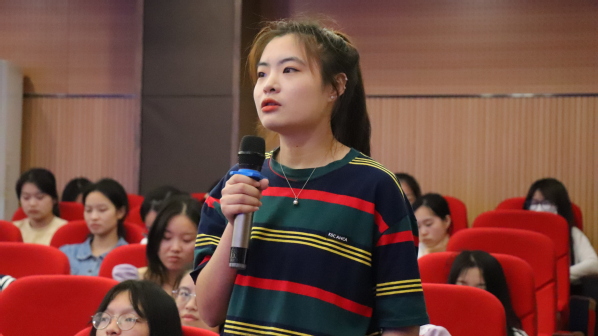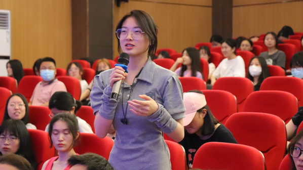 偌大的报告厅座无虚席,在场女生翘首聆听,认真学习领导专家解读的大学生留汉政策知识,切身感受女企业家分享的创业就业历程,同时就关心的就业创业问题与到场嘉宾积极互动。“您认为女大学生应怎样制定职业发展规划?”来自服装设计与工艺专业的张丽雯被女企业家龙珑的分享深深吸引,同时她也正处于就业和创业的交叉口,希望能多多开展这样的活动,让自己的职业发展更清晰、更明确。