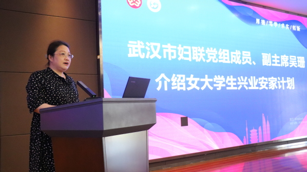 吴珊介绍了武汉市妇联“女大学生兴业安家计划”,并从就业创业宣讲进高校、校企合作提供见习岗、线上线下开展招聘活动、赋能大学生成长发展、举办女性创新创业大赛五个方面赋能女大学生群体就业创业,帮助女大学生树立理性的择业观和就业观,提前做好职业规划,为留汉就业创业奠定基础。