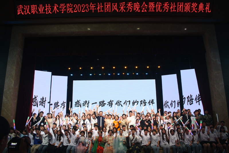 武职网讯(通讯员 崔雪萌)“社”彩洋溢,“团”聚青春。6月8日晚,武汉职业技术学院2023年学生社团风采秀晚会暨优秀学生社团颁奖典礼在关山校区德礼堂举行,副校长刁元斌、学校有关职能部门负责人、各学生社团指导老师以及全校92个学生社团近900余名学生到场观摩。