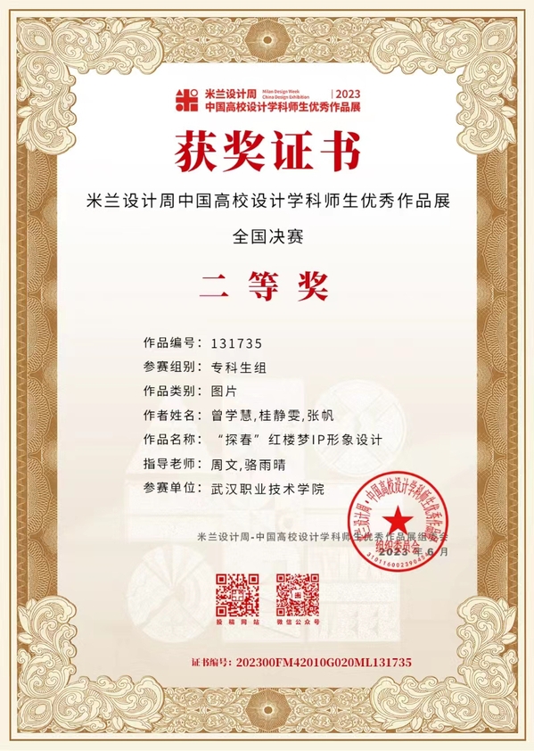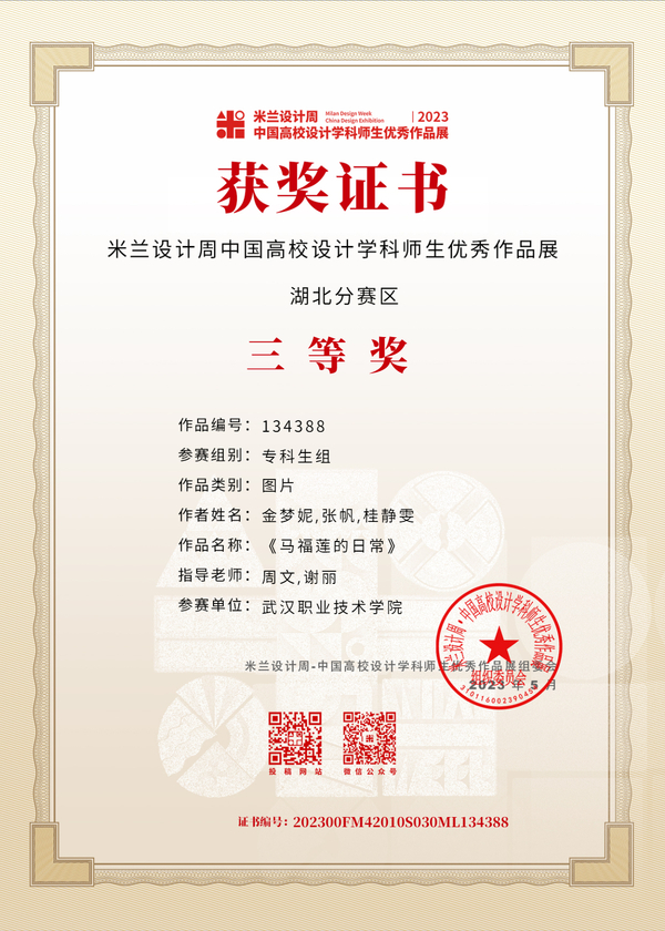 武职网讯(通讯员 骆雨晴)近日,第七届米兰设计周——中国高校设计学科师生优秀作品展(全国决赛)公布获奖结果,武汉职业技术学院艺术设计学院学子斩获非命题赛道全国二等奖2项,湖北赛区一等奖、二等奖、三等奖各1项。