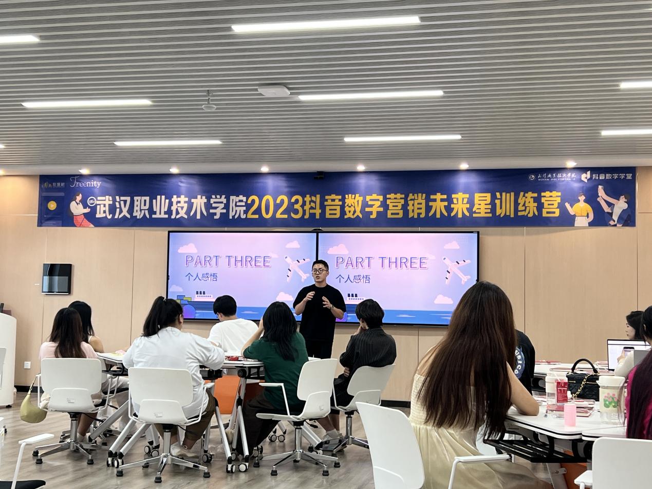 本期训练营是武汉职业技术学院和智慧树网、抖音数字学堂共同发起的青年储备人才培养项目,旨在通过引产入校,用真实任务全面提升学生新媒体创作与运营、直播电商等技能,增强运用数字工具解决企业营销、销售、渠道等问题的能力。训练营于5月29日开营,在为期一个月培训里,校企导师指导学员们进行了数字营销理论培训、模拟创业组织搭建、校企双选会、实习就业跟进等多阶段训练。