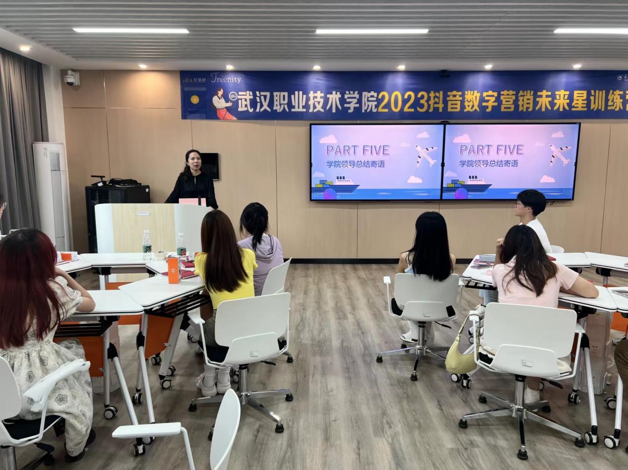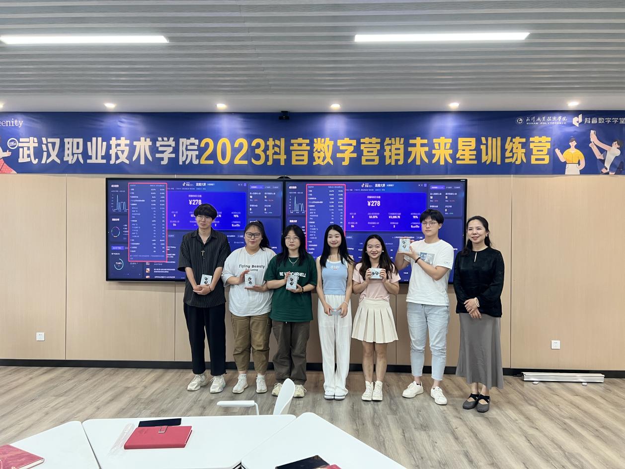 武职网讯(通讯员 杨俊超 秦冲 雷洁 摄影 邱婧 杨俊超)6月30日,由武汉职业技术学院智能商务学院与智慧树网、抖音数字学堂联合举办的2023抖音数字营销“未来星”训练营在光谷东校区顺利结营。智能商务学院院长周蓉、电子商务专业带头人张明勇,智慧树产业导师焦红娟、抖音数字学堂督导邓屿峰及相关指导老师出席活动并为“最佳直播团队”和“最佳种草短视频团队”颁奖。