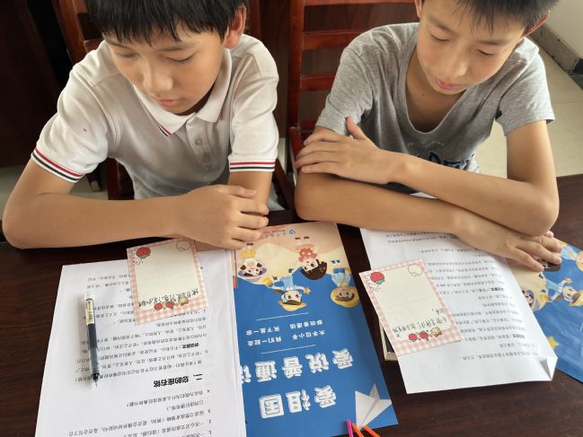 “我是中国娃,生于华夏家。来讲普通话,连接你我他。”7月2号一天,詹店村党员活动中心四楼学习室传出络绎不绝的朗朗读书声,一声声标准普通话童声清脆悦耳。