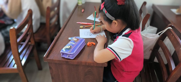 蔡井村孩童们在绘画课上