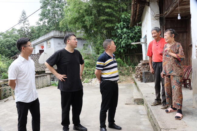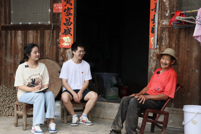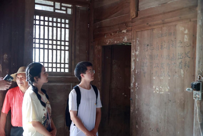 7月13日至15日,实践团队将“思政小课堂”融入“社会大课堂”,依托梭布垭村周边的红色资源,开展寻访身边党员活动,拍摄“寻访身边党员,传承红色基因”视频作品,用镜头记录梭布垭村红色记忆。为此,队员陈思琪、刘国威在武汉职业技术学院驻村第一书记全建业带领下,来到已有49年党龄的臧发树夫妇家中。