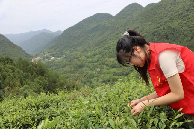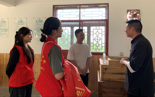 队员们在茶园里学习采摘茶叶,在茶厂体验制茶工艺,并运用所学新媒体专业技能进行“硒之春”茶产品推广指导。期间,队员吝馨姝对茶厂负责人陈松林进行了人物采访。